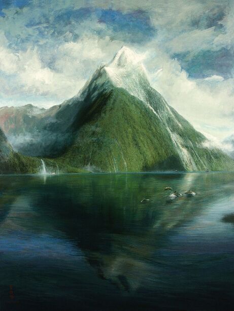 米佛峡湾 油画 李健仪作